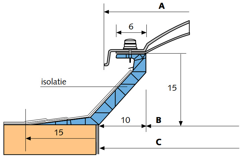 - Dakuitsparing: dagmaat + 20 cm